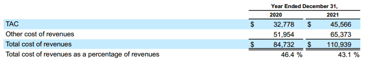 The following tables present cost of revenues, including TAC (in millions, except