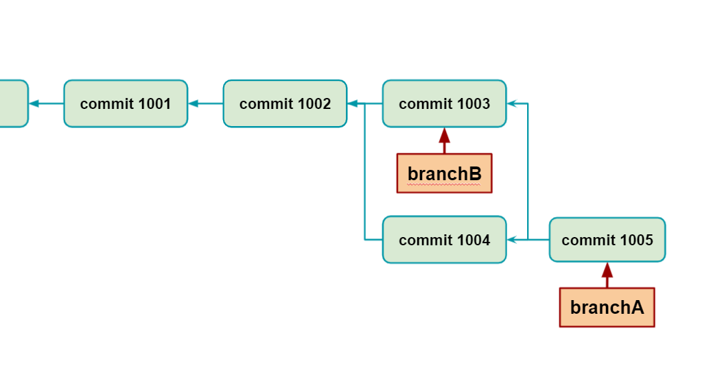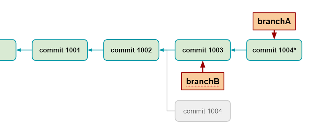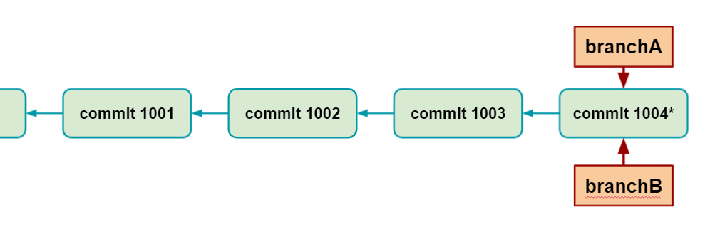 ⓑ 'branchA' 브랜치 포인터는 그저 최신 커밋으로 이동한다. ('Fast forward 방식')